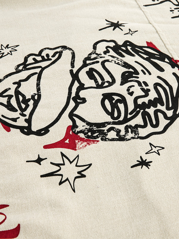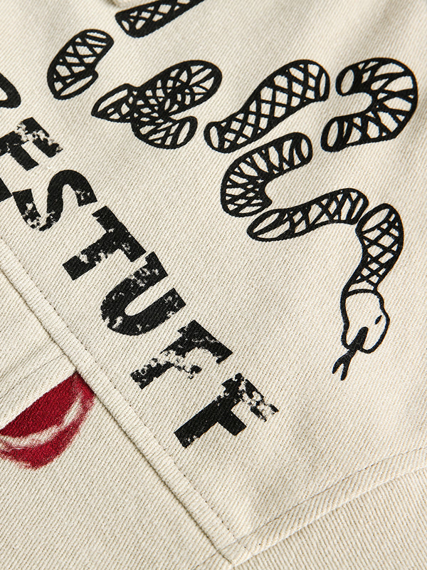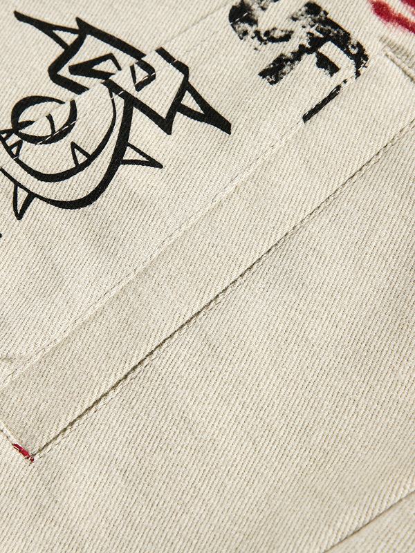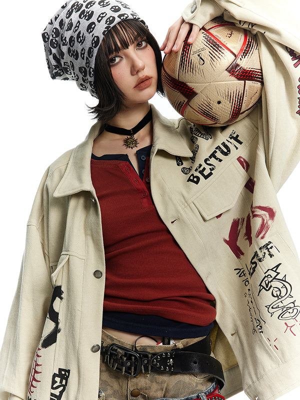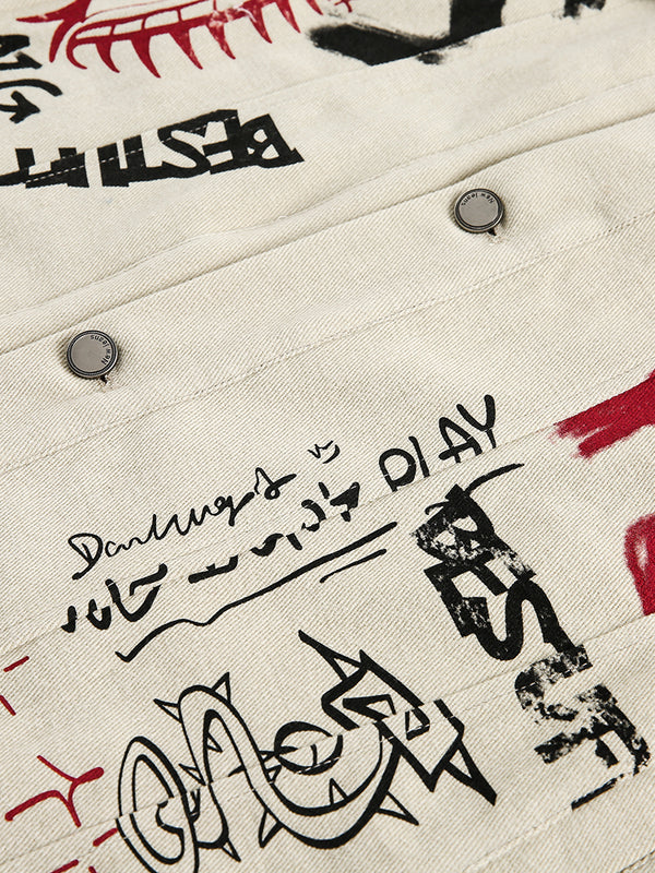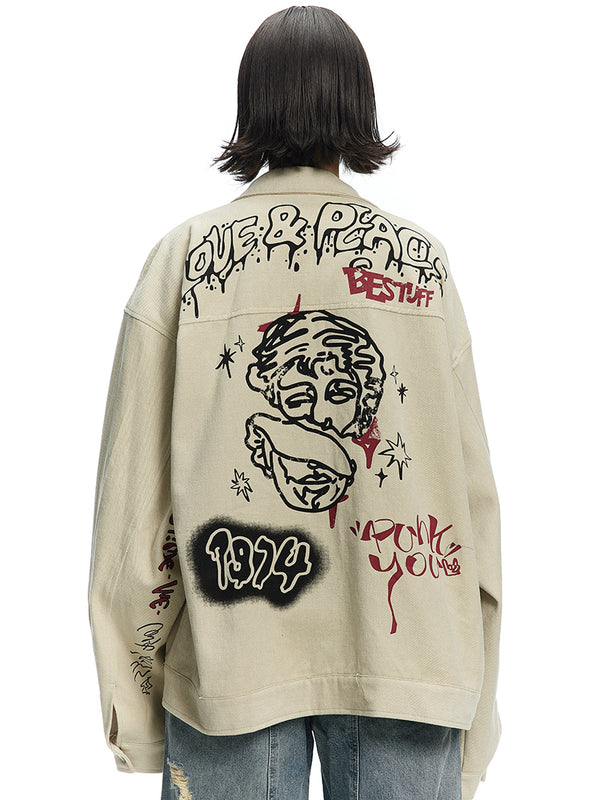 Graffiti Detaylı Yıkanmış Kargo Kadın Ceket